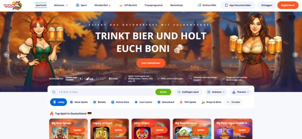 Vulkan Vegas ist ein etabliertes Online-Casino, das Spielern weltweit ein erstklassiges Spielerlebnis bietet. Mit über 2.000 Spielen, darunter Spielautomaten, Tischspiele und Live-Casino-Optionen, überzeugt die Plattform durch Vielfalt, spannende Features und attraktive Boni.